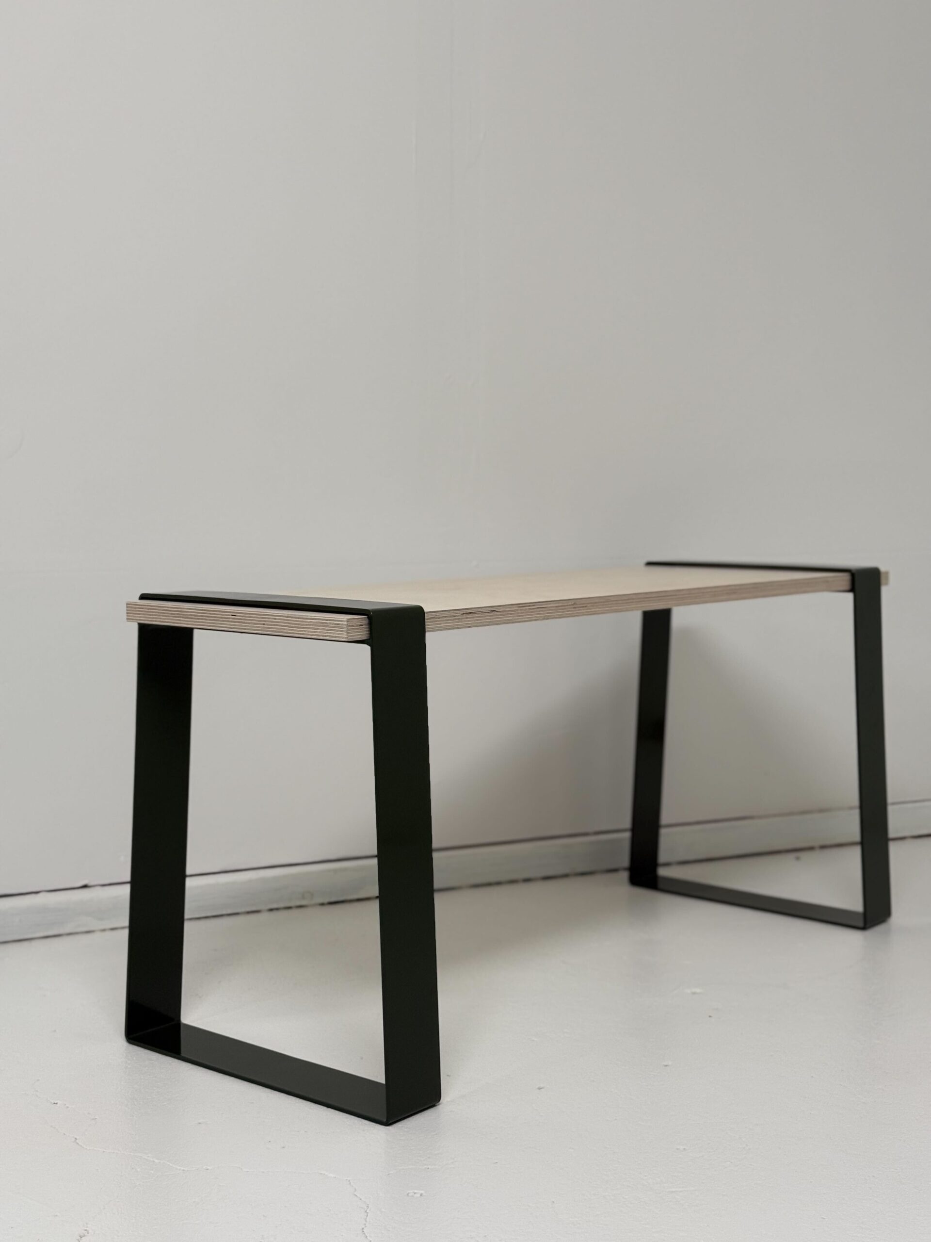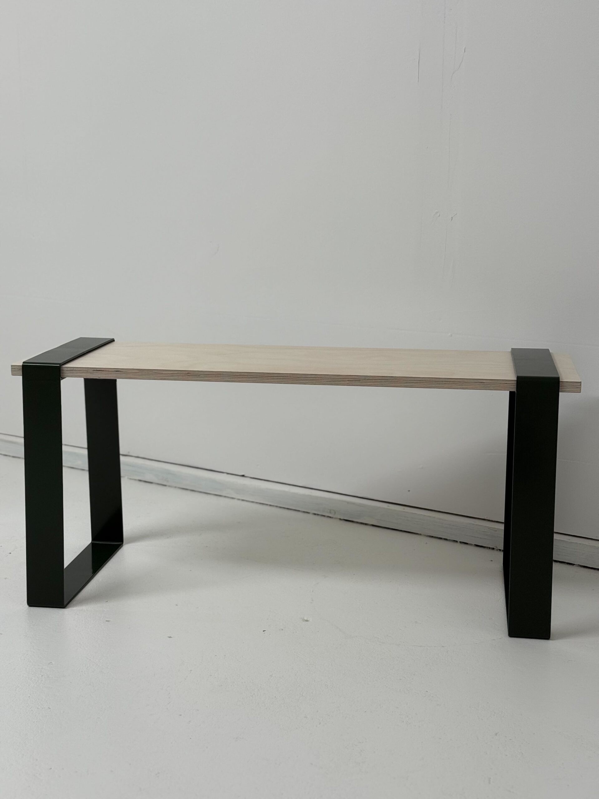Sittbänk Skogen tar given plats i hemmet. Metallbenen ger stadga och en enkelhet i uttrycket. Sittskivan kan fås i vitpigmenterad plywood eller med svart bets.